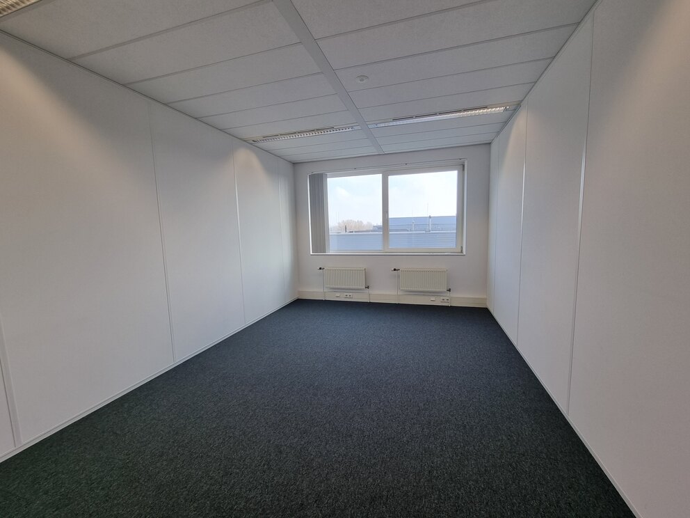 De foto welke wordt getoond is ter impressie en is genomen in de naastgelegen (vergelijkbare) kantoorruimte.