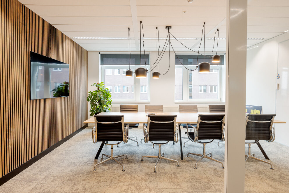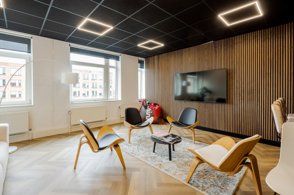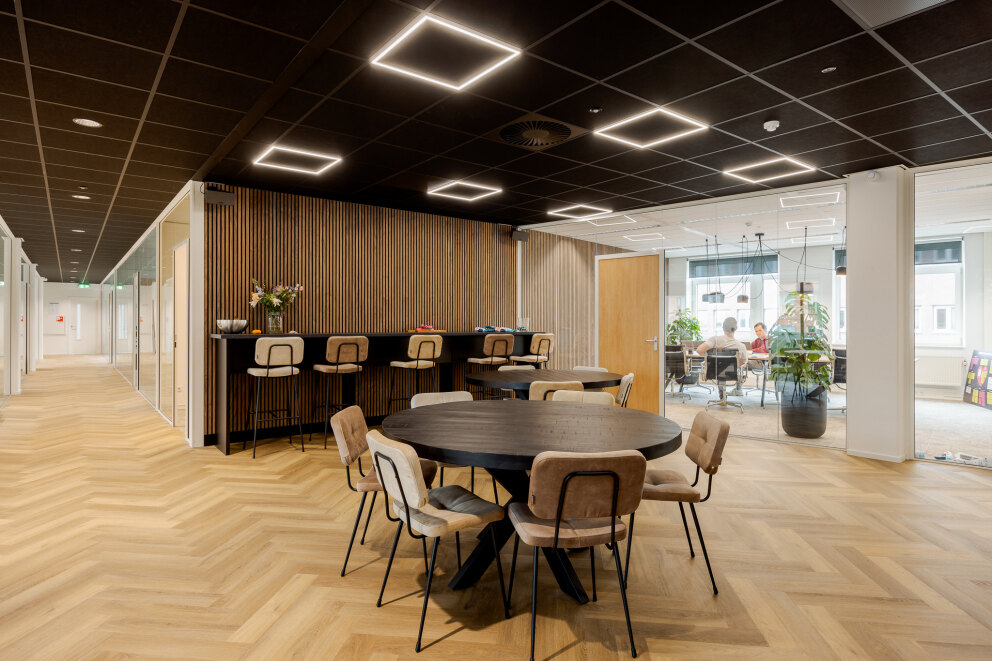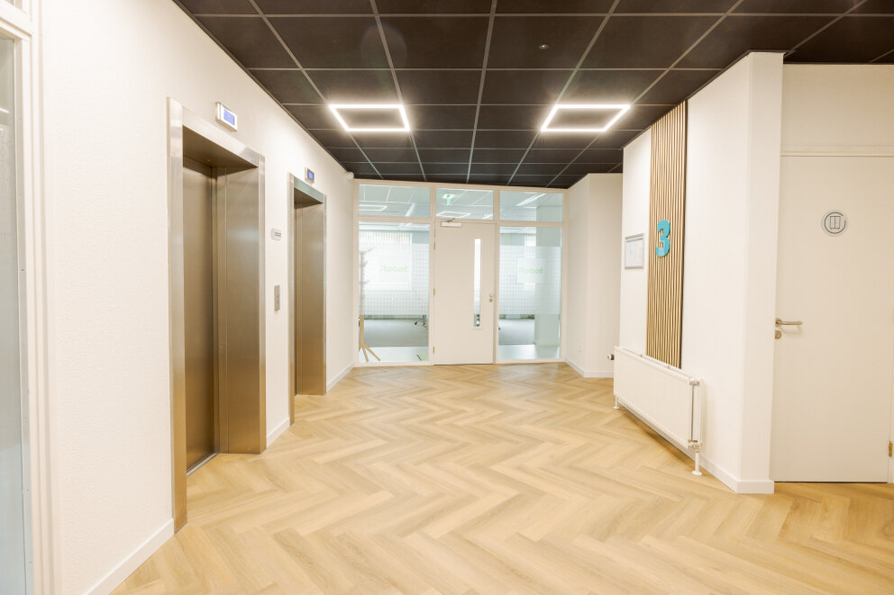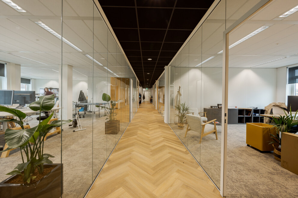 De 3e etage (waterzijde) is in overleg te huur en betreft een instapklaar kantoor voorzien van een modern inbouwpakket.