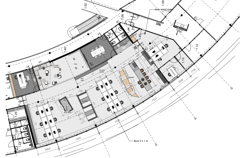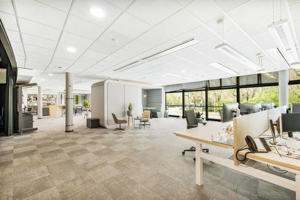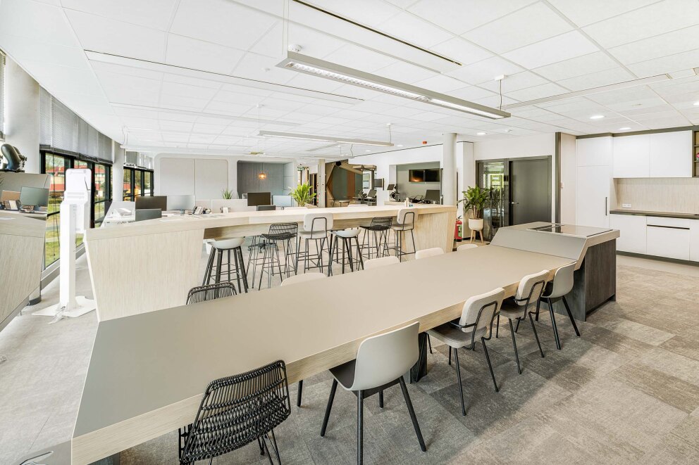 Kantoorruimte V3 is een instapklare kantoorruimte voor +- 25 werkplekken. Dit kantoor is voorzien van een modern inbouwpakket en van alle gemakken voorzien zoals eigen vergaderruimtes en een moderne grote keuken.